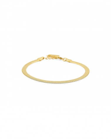 Add to cart Prix 48,00 € Bracelet Gladys Bracelet modèle Gladys, plaqué or 24 carats. Bracelet fantaisie serpentine plate, longueur 15 cm avec 3 cm de chaine de réglage et un fermoir...