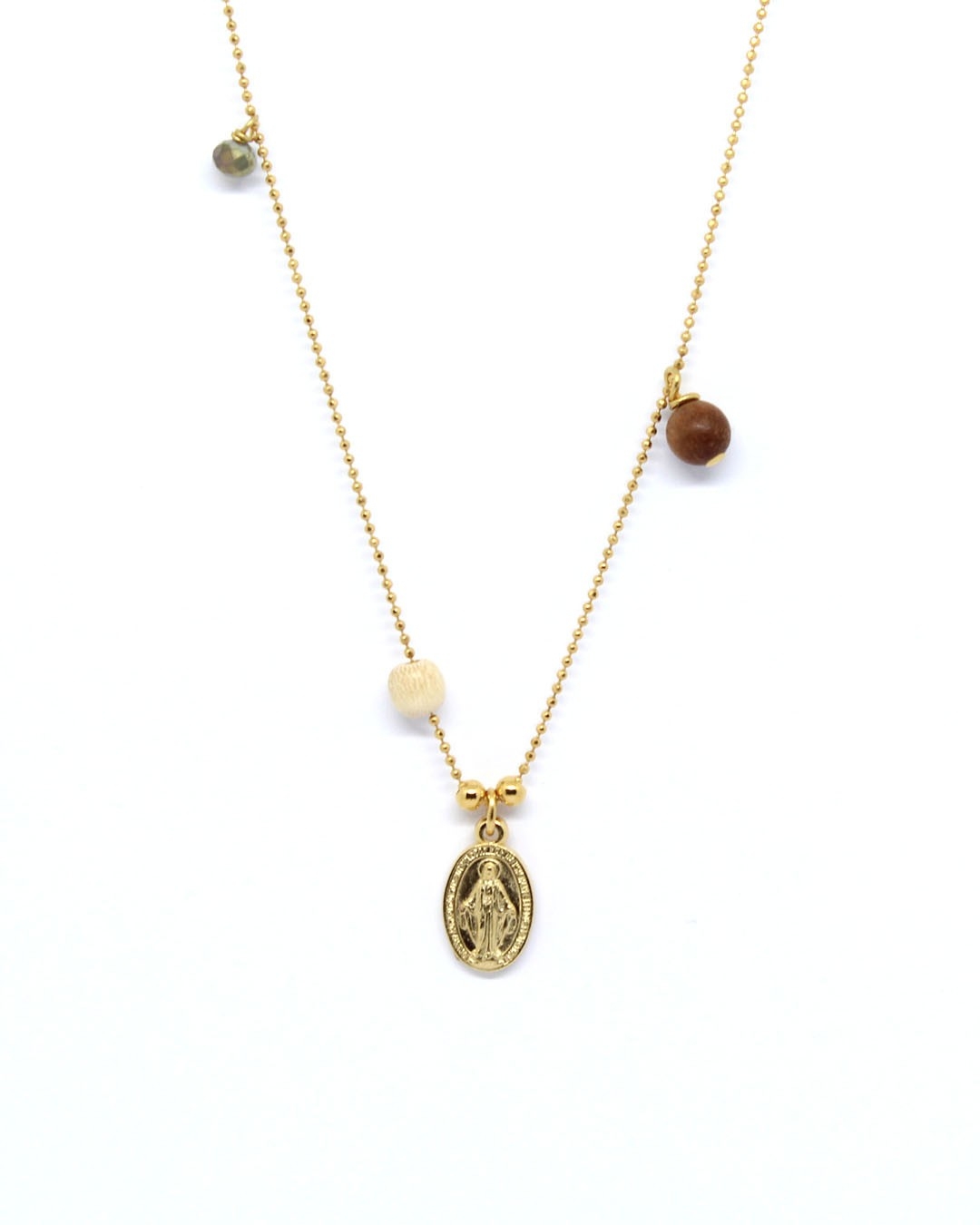 Sautoir modèle Vierge Miraculeuse, plaqué or 24 carats.